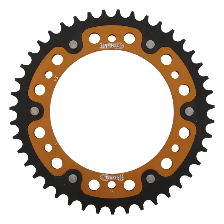 De SUPERSPROX REAR STEALTH 43T sprocket in een opvallende gouden uitvoering is een uitstekende keuze voor motorrijders die op zoek zijn naar kwaliteit en prestaties. Deze sprocket is ontworpen om jouw motor een boost te geven in zowel snelheid als efficiëntie. Met een tandwielverhouding van 43T en een 520 kettingmaat, biedt deze sprocket de perfecte balans tussen kracht en controle.