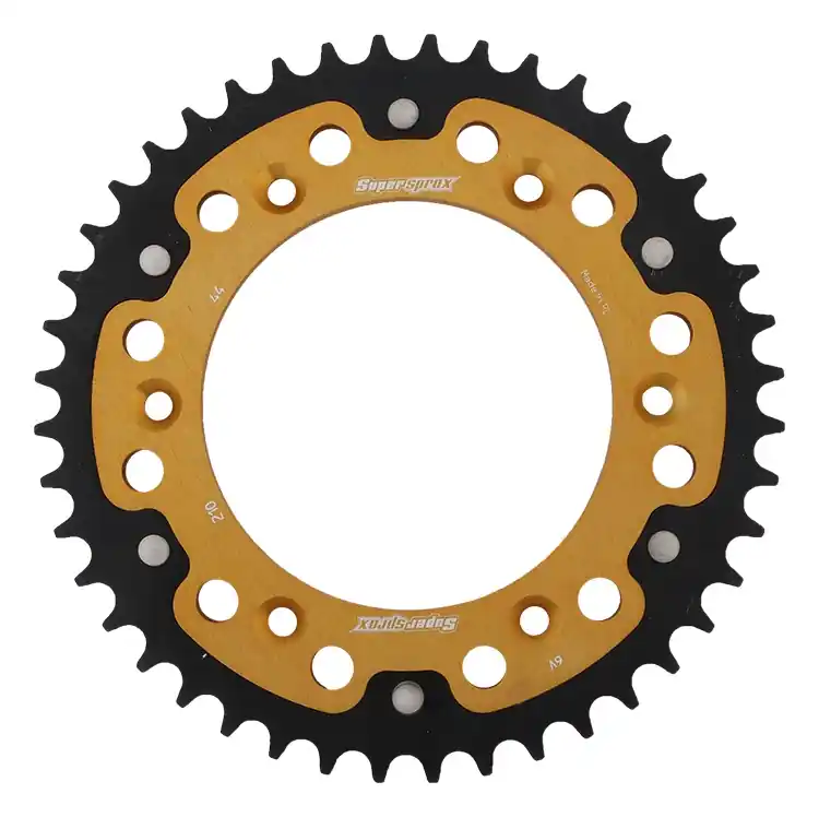 Maak kennis met de **SUPERSPROX REAR STEALTH 44T, GOLD, 520**, een hoogwaardige sprocket die ontworpen is voor uitstekende prestaties. Deze sprocket is een geweldige keuze als je op zoek bent naar een upgrade voor je motor of scooter. Met zijn opvallende gouden afwerking geeft hij niet alleen een esthetische boost, maar biedt hij ook de functionaliteit die je nodig hebt.