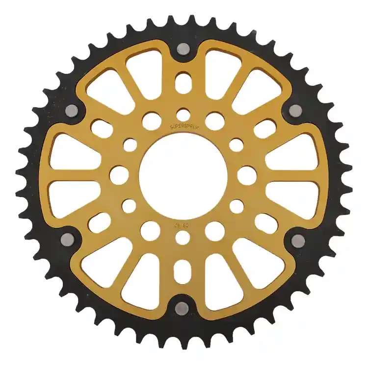De SUPERSPROX REAR STEALTH 47T is een hoogwaardige sprocket in een opvallende gouden kleur, ontworpen voor optimale prestaties. Met een tandwielverhouding van 47 tanden en een 520 kettingcompatibiliteit, biedt deze sprocket de perfecte balans tussen acceleratie en topsnelheid. Dankzij de robuuste constructie is deze sprocket niet alleen duurzaam, maar ook lichtgewicht, wat bijdraagt aan een verbeterde handling van je motor.