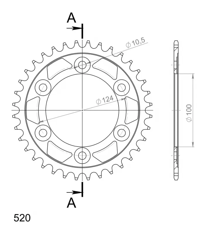 Het achtertandwiel heeft een diameter van 36 tanden en is speciaal ontworpen voor een 520 ketting. De zwarte afwerking geeft niet alleen een esthetische meerwaarde, maar biedt ook bescherming tegen corrosie en slijtage.