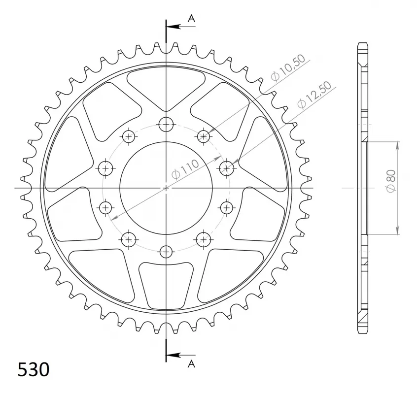 Dit tandwiel heeft een kettingmaat van 530, wat zorgt voor een goede pasvorm en prestaties.
