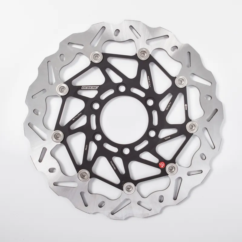 De BRAKING SK2 320 is een hoogwaardige wave floating brake disc ontworpen voor optimale prestaties en betrouwbaarheid. Dit remschijf model biedt een uitstekende balans tussen gewicht en kracht, waardoor je motor meer responsief aanvoelt bij het remmen. Het unieke golfontwerp zorgt voor een betere warmteafvoer, wat cruciaal is voor veiligheid en duurzaamheid.