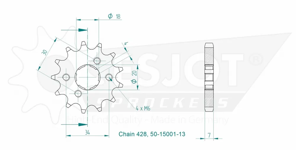 Tijdelijk Beschikbaar ESJOT – FRONT 13T, 428 – Sprockets – 13T Tanden
