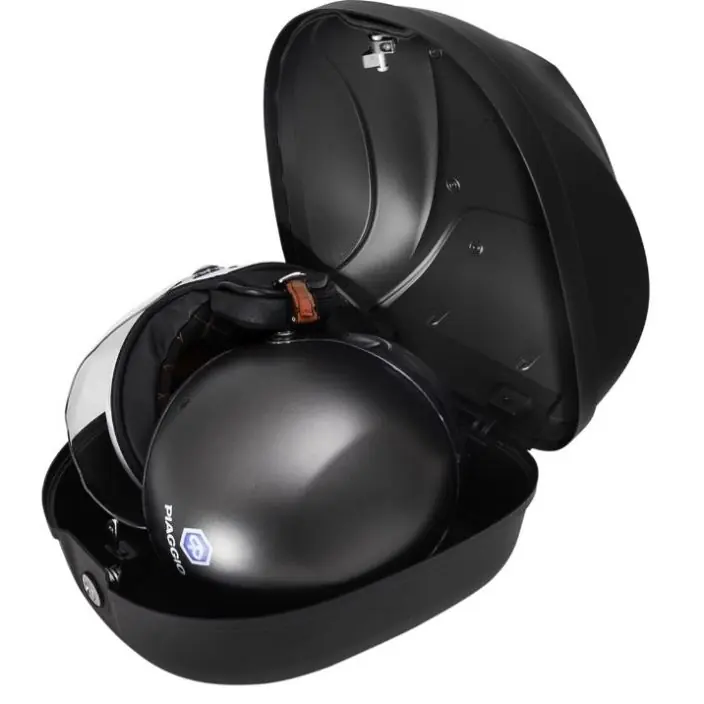 37 liter topkoffer. Cover gespoten naar de kleur van de scooter met Piaggio logo. Optionele rugsteun verkrijgbaar. Let op: installatie kit is nodig als u deze op het standaard rek wilt monteren.