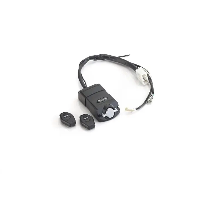Alarmupgradesysteem op maat met Thatcham-goedkeur (categorie 2/1), ontwikkeld in samenwerking met Datatool. Ontwikkeld om te kunnen installeren zonder dat hiervoor de kabelboom van de motorfiets hoeft te worden aangepast. Bestaat uit een met hars vergoten, water- en schokbestendige constructie. Inclusief twee waterdichte alarmsleutelhangers.Dit alarm is niet voorzien van een SCM keuring, omdat dit alarmsysteem niet is aangeboden aan SCM door Triumph. Dit alarm is gelijkwaardig aan een SCM gekeurd alarm en kan worden geleverd met een officiële verklaring van Triumph Motorcycles. De meeste verzekeraars gaan akkoord met deze verklaring, waardoor het alarm dus alsnog goedgekeurd is voor de diefstalverzekering.Geef bij de opmerkingen tijdens het afrekenproces aan dat de verklaring van Triumph Motorcycles gewenst is. Wij sturen u deze officiële verklaring per e-mail.