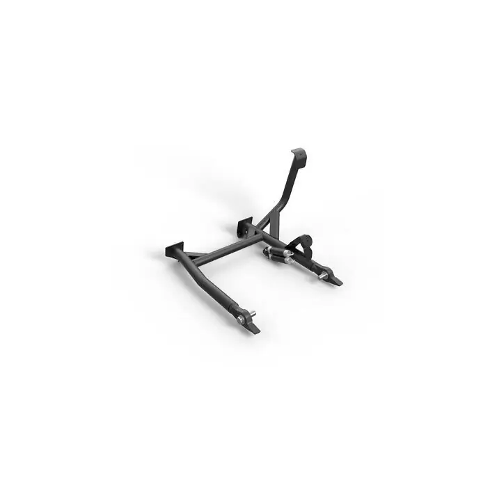 Op maat gemaakte middenstandaard, compleet met alle benodigde bevestigingsmaterialen. De hoogwaardige standaard vereenvoudigt de procedures voor reiniging en onderhoud van het achterwiel.