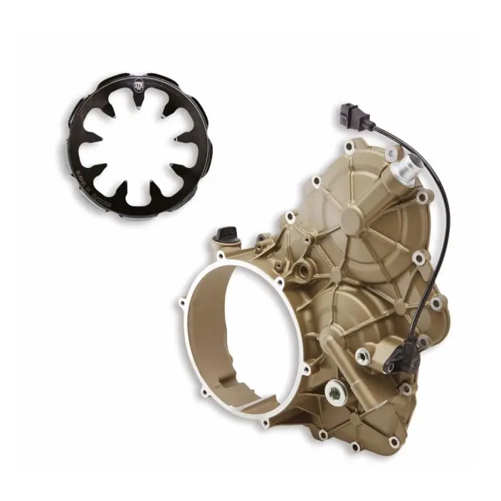 Accessoire van magnesiumlegering vereist voor de installatie van de droge koppeling in niet-vooraf ingestelde voertuigen. Het bevat alles wat nodig is voor de installatie van deze koppeling. Een echte musthave voor de meest veeleisende Ducatista’s.