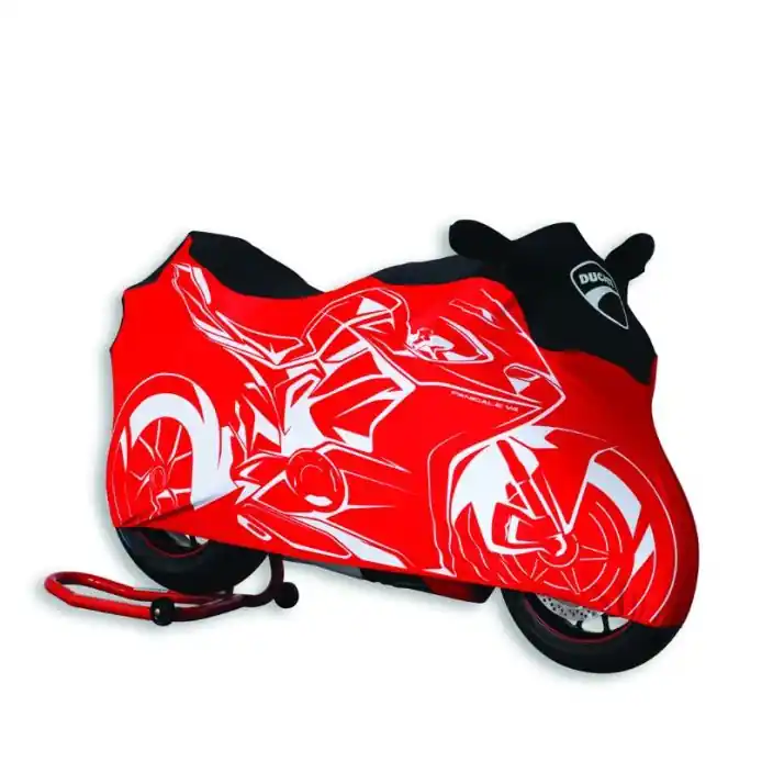 Ducati Motorhoes. Deze zachte motorhoes is binnen te gebruiken en gemaakt van de beste materialen.