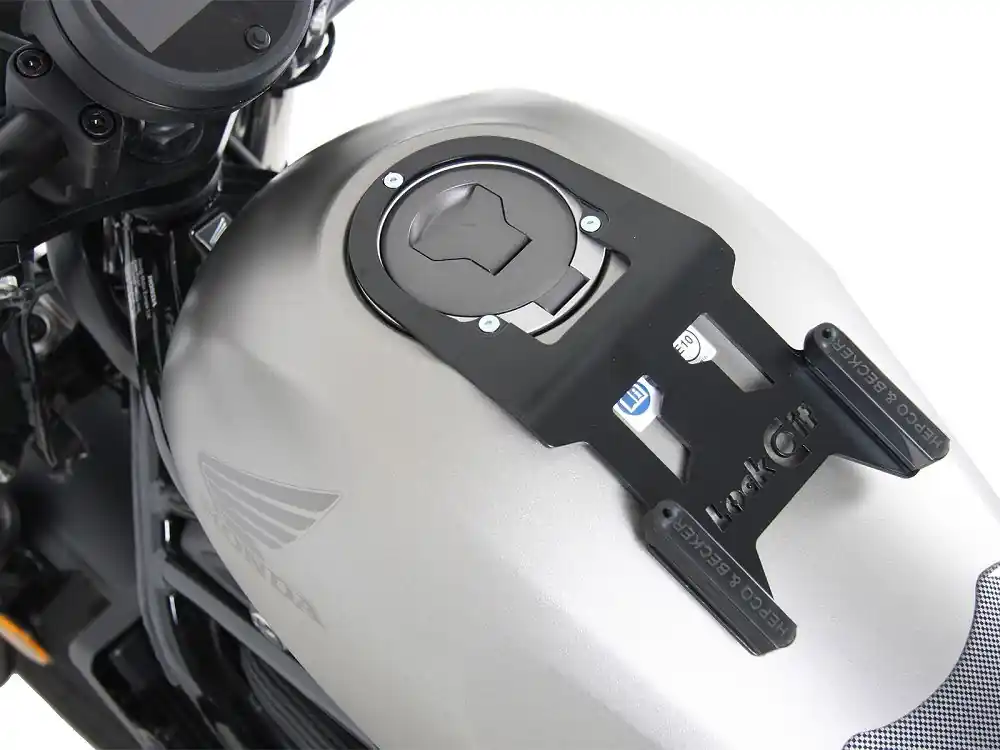 -de Hepco & becker tanktas wordt eenvoudig op de tankring geplaatst en vergrendelt hoorbaar, dankzij een slim mechanisme.