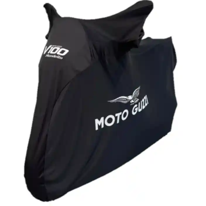 Gemaakt van hoogwaardige materialen biedt het een continue bescherming tegen stof. Dankzij de ademende stof voorkomt het condensatie in de hoes omdat het vocht kan verdampen. Gemaakt van elastische stof die de vorm van de motor volgt. In kleur zwart met MOTO GUZZI logo gedrukt en speciaal gemaakt voor V100 Mandello.
