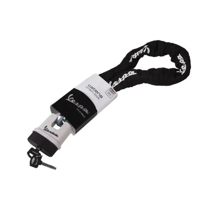 Ketting met schakel 12mm dik. Slot met omkeerbare sleutel, 10mm dik stalen link tegen doorslijpen van de sleutel. (140 cm – 3.20 Kg)