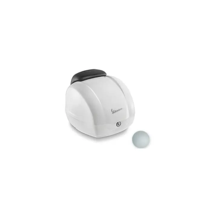 Gespoten topkoffer, met rugsteun van hetzelfde materiaal als het zadel. Modern ontwerp met de afwerking van Vespa. Kan 1 integraalhelm opslaan of 2 systeemhelmen. Kleur: Grijs.