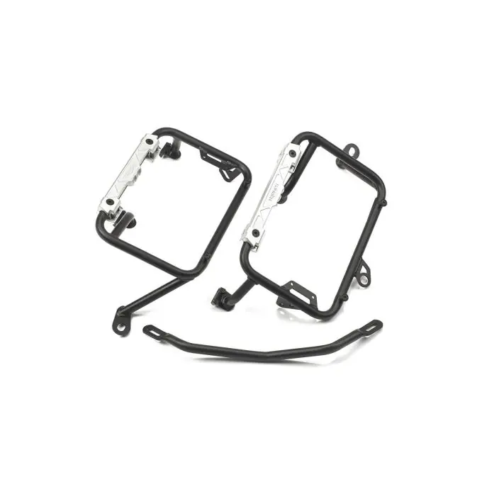 Stalen montagerails voor de correcte montage van Triumph Expedition-zijkoffers afgewerkt in zwart.