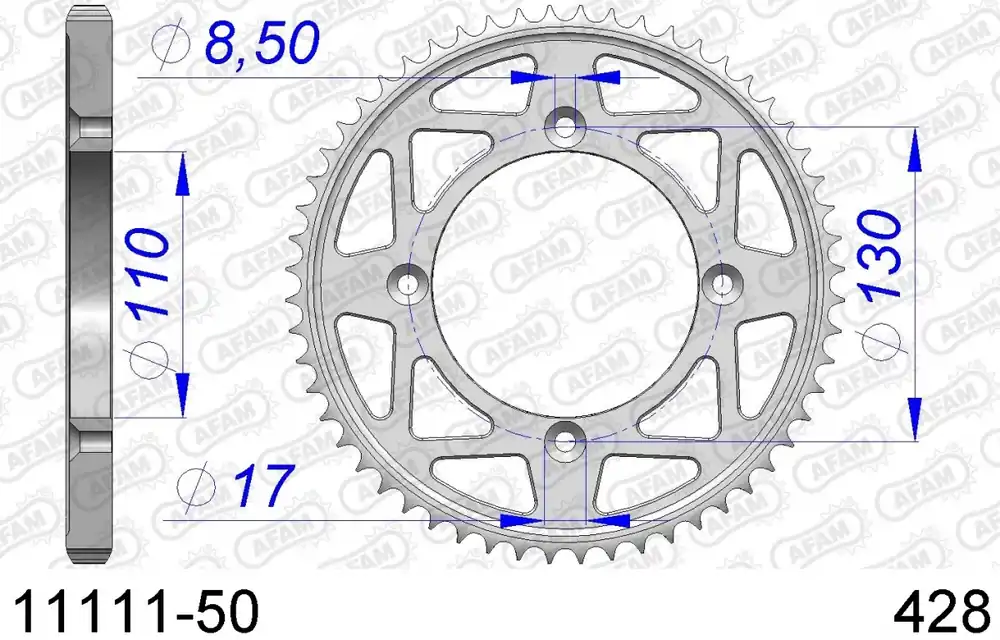 De AFAM REAR ALU 50T, 428 is een hoogwaardige sprocket die speciaal is ontworpen voor motoren en scooters. Dit product valt onder de categorie sprockets en is ideaal voor wie op zoek is naar een betrouwbare en duurzame oplossing voor hun voertuig.