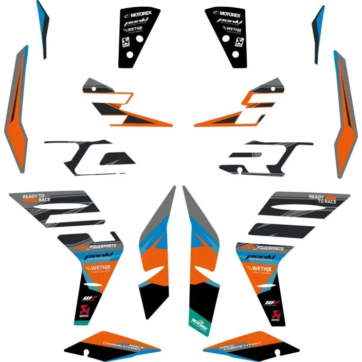 Gemaakt van materialen van de hoogste kwaliteit met perfecte pasvorm. Personaliseer het uiterlijk van je motorfiets. Ontworpen om het originele uiterlijk van uw motorfiets volledig te veranderen. Plak de grafische kit rechtstreeks op de standaard kuipdelen. Kan worden verwijderd zonder resten achter te laten.