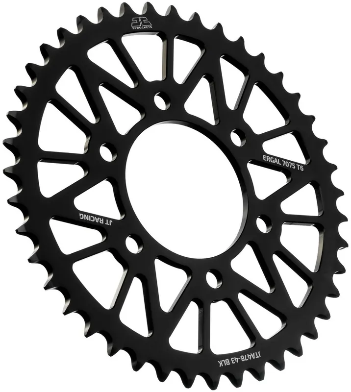 Met een tandenaantal van 43 biedt dit sprocket een perfecte balans tussen snelheid en kracht. Het zwarte afwerkingslaag geeft niet alleen een stijlvolle uitstraling, maar beschermt ook tegen corrosie en slijtage. Dit maakt de JT SPROCKETS REAR RACELITE niet alleen een functionele keuze, maar ook een esthetische aanvulling op jouw voertuig.