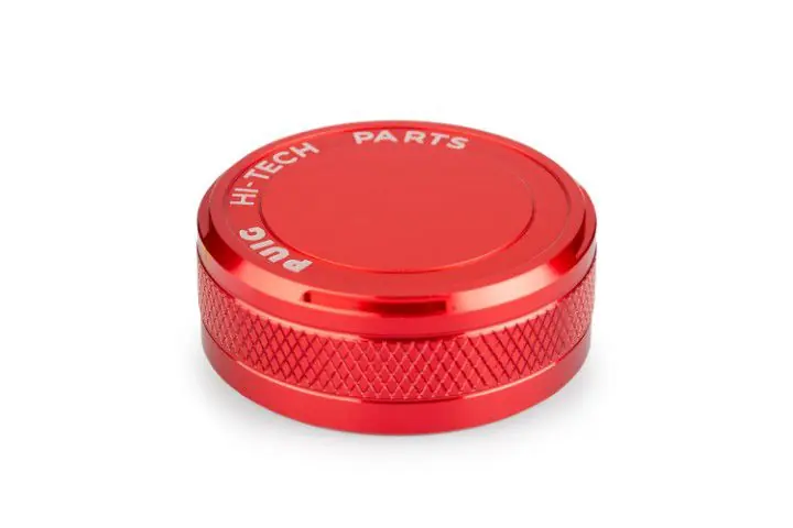 Puig remvloeistofreservoir deksel voor de voorrem vervaardigd uit massief aluminium en leverbaar in diverse kleuren.
