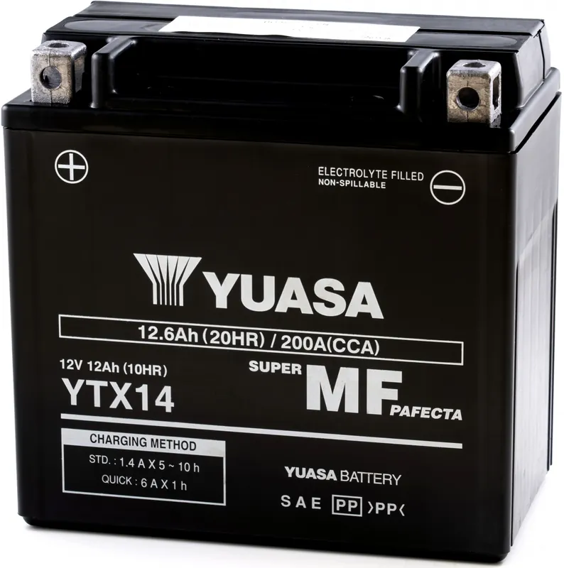 De YUASA YTX14 (WC) batterij is een uitstekende keuze voor jouw motor of scooter. Deze natte batterij is speciaal ontworpen om betrouwbare prestaties te leveren, waardoor je met een gerust hart de weg op kunt. Het model is geschikt voor een breed scala aan voertuigen, waaronder verschillende Aprilia, BMW, Buell, Ducati, Guzzi, Harley, Honda, Kawasaki, KTM, Piaggio, Suzuki, Triumph, en Yamaha modellen.